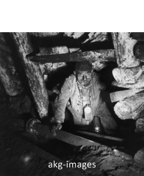 A supervisor crawls out of a narrow seam at the Hannover mine in Wanne-Eickel,