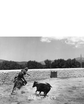 The Duke of Pinohermoso in his private bullring. Spain, 1951