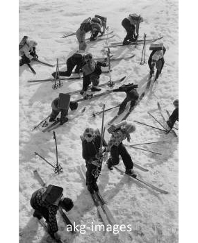 Children in the Austrian Enns-Valley scrambling to get their skis