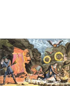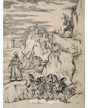 An etching by an unknown artist of the abduction of Reiza from a 1936
