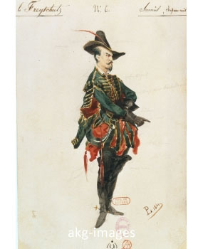 A watercolour from 1870 by Alfred Albert showing a costume design
