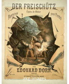 an engraving of Act 2, Scene 6, showing Kaspar and Max in the Wolf's