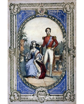 A coloured lithograph of the couple both wearing the Order of the