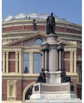 in 1871: a view of the building and the statue of Albert...