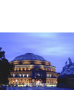 Two exteriors of the Royal Albert Hall, opened by Queen Victoria