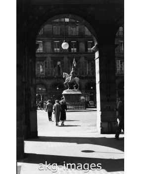 1FK-5-H2-1950 Two views of the equestrian statue of Joan by Emmanuel Fremiet on the Place des Pyramides in Paris: first, a view from 1950...