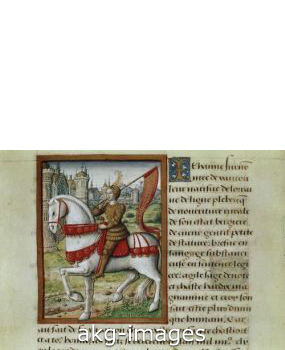 A portrait of Joan of Arc on horseback from a French illuminated