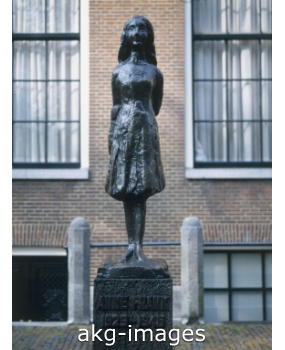 1-F612-H1-2000 Sculpture of Anne by Mari S. Andriessen in Westermarkt, Prinsengracht, Amsterdam