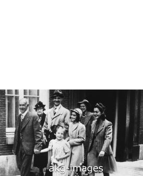 1-F612-K1941 At the wedding of Miep Santrouschitz and Jan Gies, 16 July 1941: Anne walks between her parents Margot and Otto