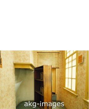 1-F612-M1-1994-4 Entrance to the hiding place in Prinsengracht 263 hidden by a bookcase, 1994