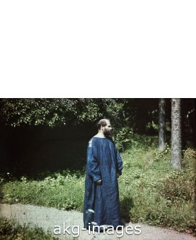 7OE-I1-217644 Klimt in his smock at Lake Attersee, circa 1910, photographed by Friedrich Walker akg-images / Imagno
