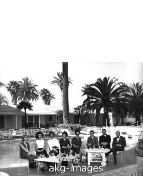 7IT-E2-AA226415 Models and correspondents from Grazia magazine at the Hotel Miramar, Santa Monica, 1963