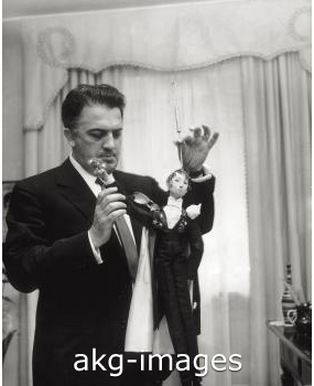 7IT-E2-AA329109 Fellini with a marionette in his home in Rome, 1960