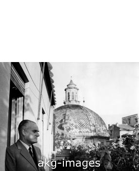 7IT-E2-AA361440 Alberto Moravia on the terrace of his home in Rome, February 1961
