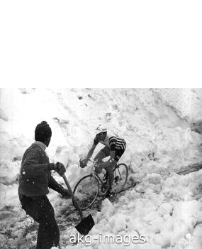 7IT-E2-AA226338 Italo Zilioli cycling in the snow during the Giro d'Italia Madesimo-Stelvio, 3 June 1965