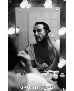 Vittorio Gassman applying makeup in his dressing room, 9 September 1982