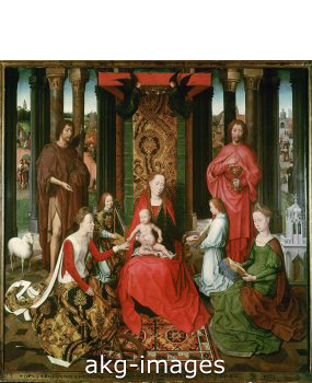 2-R42-X6-1475-15-B Hans Memling, Madonna and child with the Saints John the Baptist, John the Evangelist, Catherine, Barbara and two angels, circa 1475/79